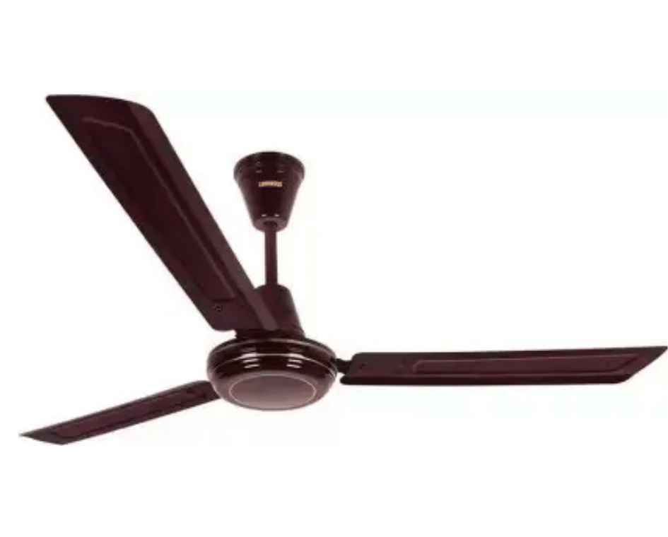1200 mm sweep, 3 blades, 52 watts power consumption, 415 RPM speed, brown/ivory/white colors available, 2 years warranty and site service.