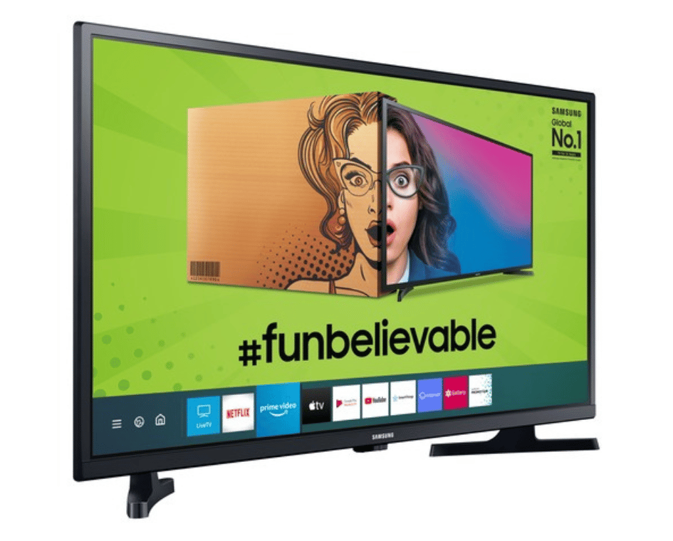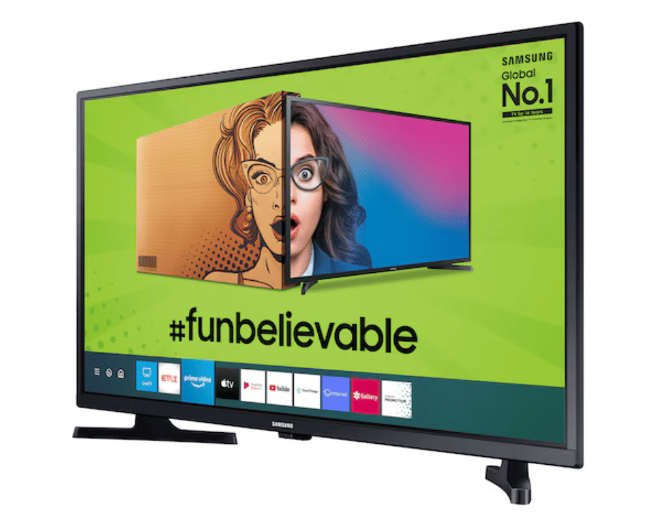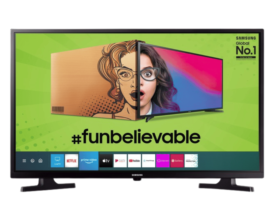 The Samsung 32 inch HD Ready LED Smart TV offers 1366 x 768 HD resolution, HDR, PurColor technology, Contrast Enhancer, and Ultra Clean View for better picture quality. It runs on Tizen OS with Smart TV apps like Netflix, Prime Video, YouTube, Hotstar. Features include Personal Computer mode for cloud-based work, screen mirroring, and a virtual music system with 20W RMS audio output. Connectivity: 2 HDMI ports, 1 USB port, Wi-Fi, Bluetooth, and remote access features.